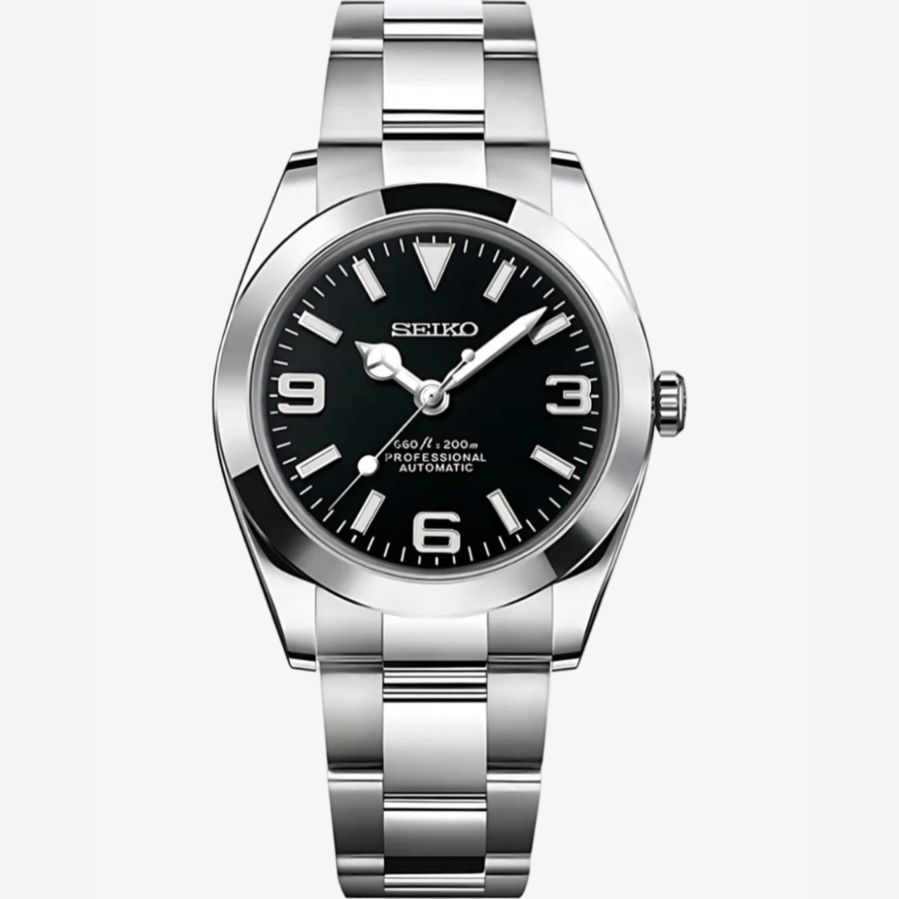 Inspirado en el icónico diseño Explorer y equipado con el confiable movimiento automático Seiko NH35, este reloj está ensamblado a mano para brindar precisión y estilo.