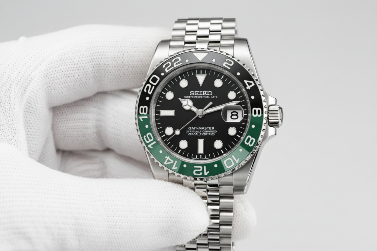 *Este es un reloj ensamblado a medida por PrimeModsWatches utilizando componentes compatibles. PrimeModsWatches no está afiliado ni cuenta con el respaldo de Seiko ni de Rolex.